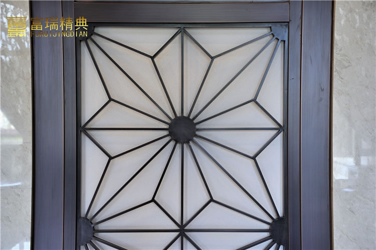 材质:玻璃紫铜门、铜花格