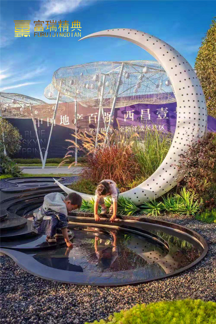 材质:不锈钢水池、不锈钢编织云朵、不锈钢月亮