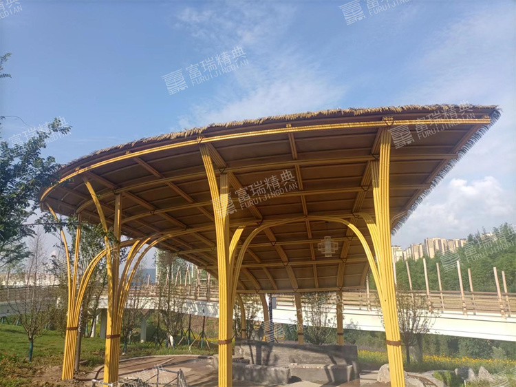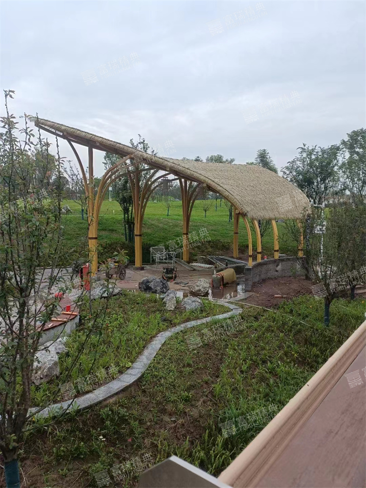 材质:不锈钢廊架、铝茅草