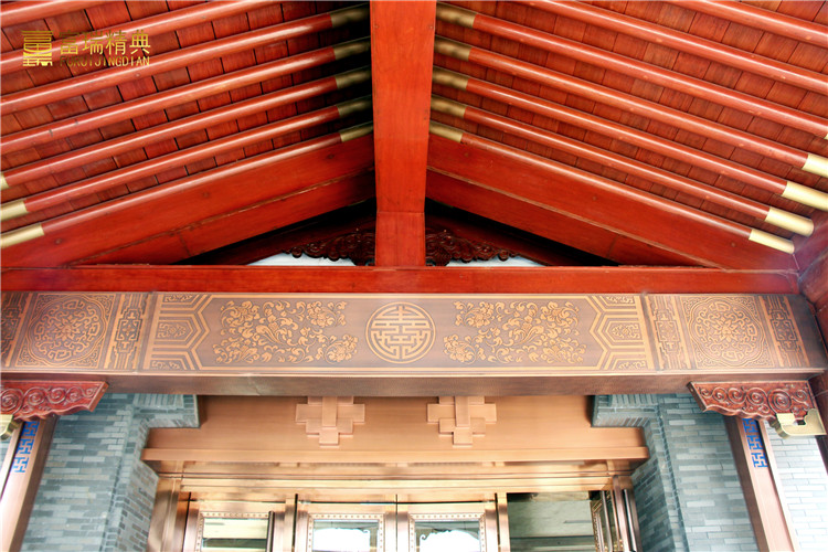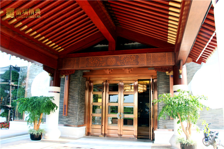 材质:铜装饰、铜牌匾、玻璃铜门