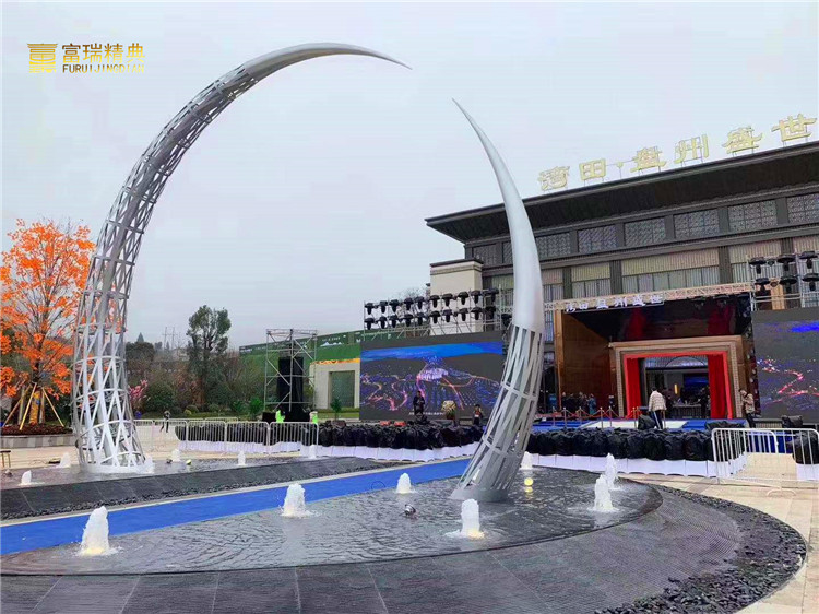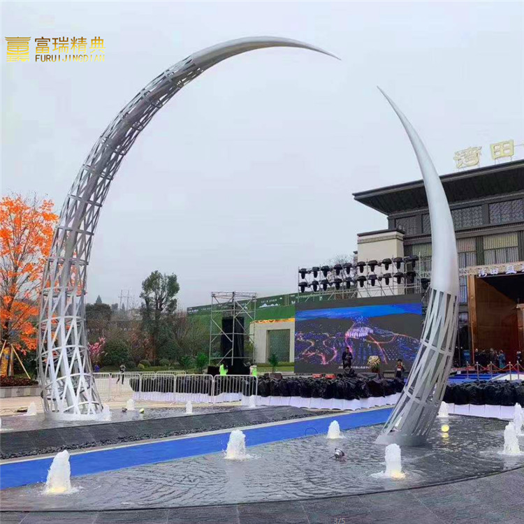 材质:不锈钢月亮雕塑、不锈钢精神堡垒