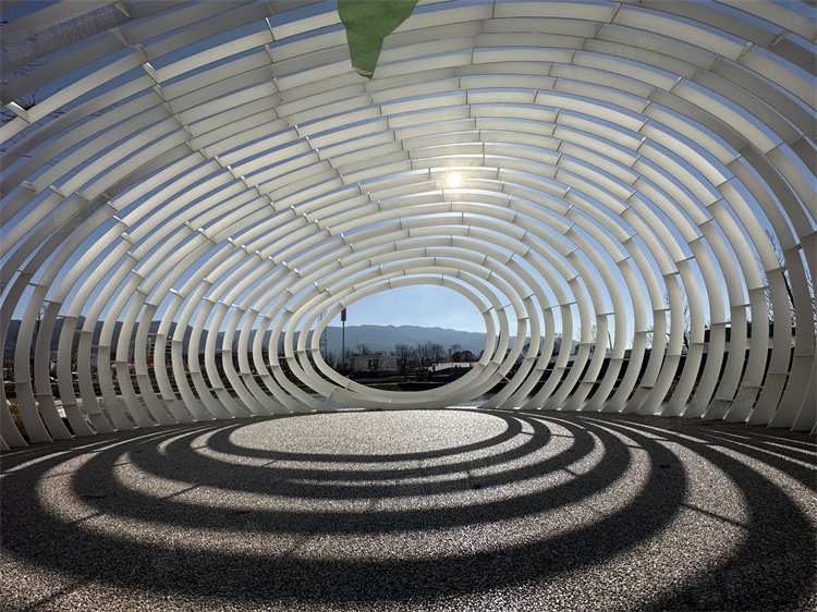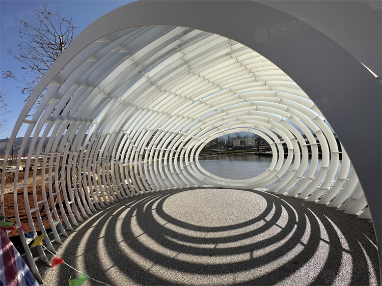项目简介:云南宣威东河公园不锈钢廊架构筑物