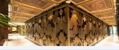 材质:铜牌匾、铜背景墙、铜屏风、铜廊架格栅